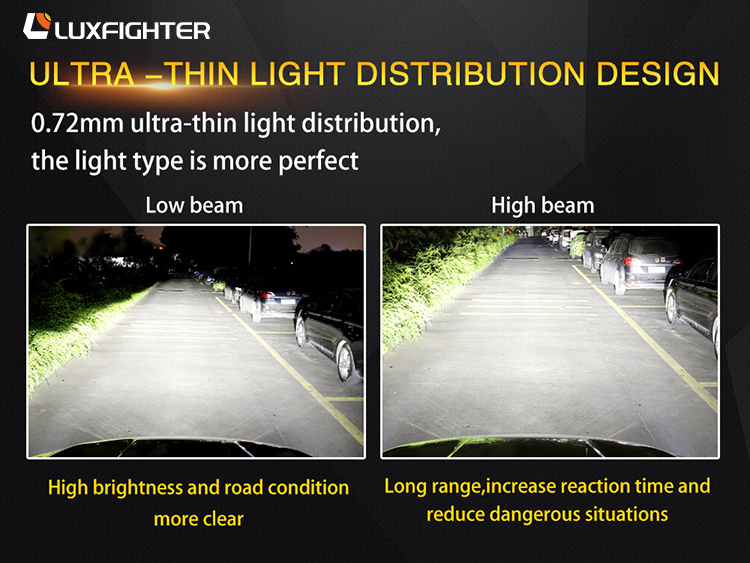 2. Automotive grade LED chip at manipis na PCB board ay ginagawang mas mahusay na pattern ng beam ng mababa at mataas na sinag.