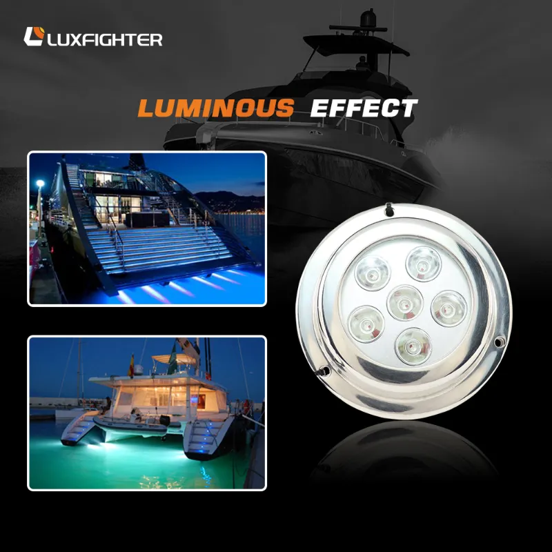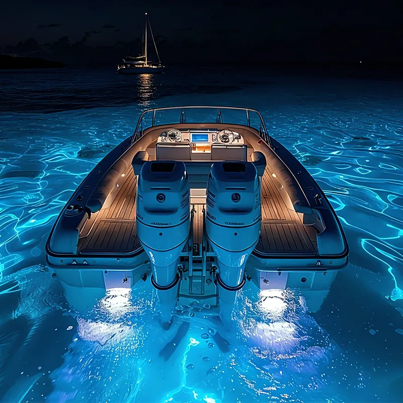Para sa mga recreational yacht na inuuna ang nighttime ambiance at visual appeal, ang RGB color-changing yacht lights ay lubos na inirerekomenda. Ang mga ilaw na ito ay naghahatid ng dynamic na pula, berde, at asul na mga transition ng kulay habang nagsisilbing mabisang fish attractant. Upang matiyak ang tibay, ang mga materyales na hindi kinakalawang na asero ay mahalaga. Kaya naman ang LUXFIGHTER ay nakabuo ng mga advanced na RGB color-changing yacht lights na may pinahusay na performance:Liwanag ng Bangka sa Ilalim ng Dagat;Para sa mga propesyonal na sasakyang pang-trabaho na nangangailangan ng pag-install sa stern o swimming ladder platform, ang mga monochromatic underwater boat lights ng LUXFIGHTER ay isang mahusay na pagpipilian. Nagtatampok ng malamig na puting liwanag at mataas na liwanag, ang mga ilaw na ito ay madaling i-install at mapanatili sa pamamagitan lamang ng pag-mount sa ibabaw:LED Underwater Boat Lights.